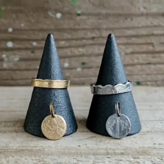 コインからできた三日月ネックレスも販売しているので、リングと合わせてお気に入りを見つけてみては?